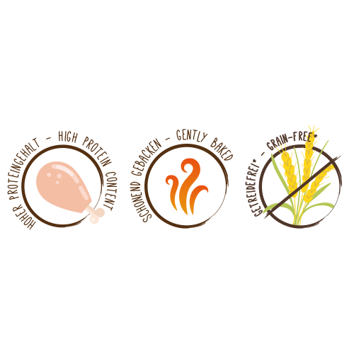 Durch den bewussten Verzicht auf Getreide und dem schonenden Backen im Ofen ist Sammy's Fitness-Schnitte ganz besonders auch für Deine sensible Fellnase geeignet.