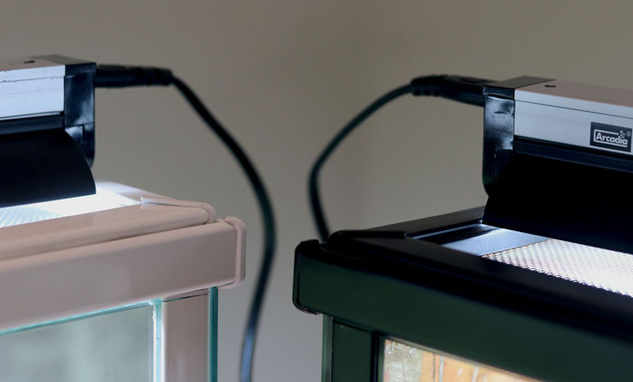 Für diejenigen, die diese Arten in kleineren oder flacheren Gehegen halten, in denen der optimale Abstand nicht erreicht werden kann, oder die dämmerungsaktive Baumbewohnende Arten halten und den oberen Teil des Geheges dekorieren/bepflanzen möchten, ist die SHADEDWELLER ARBOREAL 2,4% UV-B die bessere Wahl.