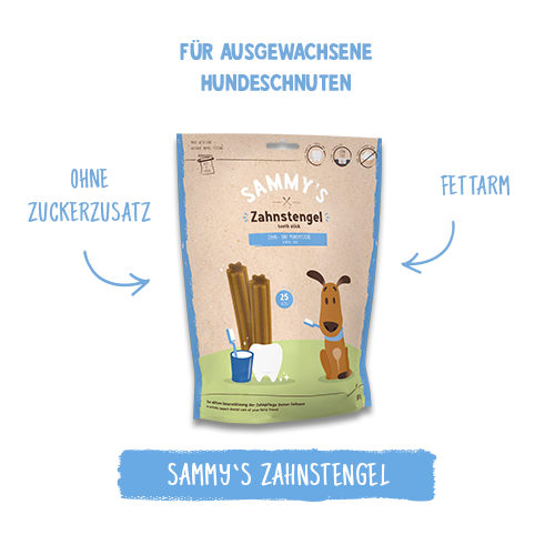 Form von Sammys flexiblem Zahnstengel regt Deinen Hund zum Kauen an,