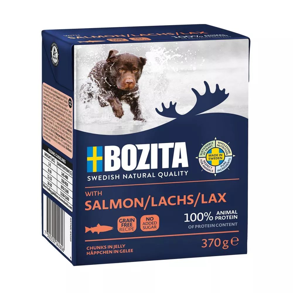 Bozita Häppchen in Gelee mit Lachs ist ein äußerst schmackhaftes Nassfutter für alle erwachsenen Hunde
