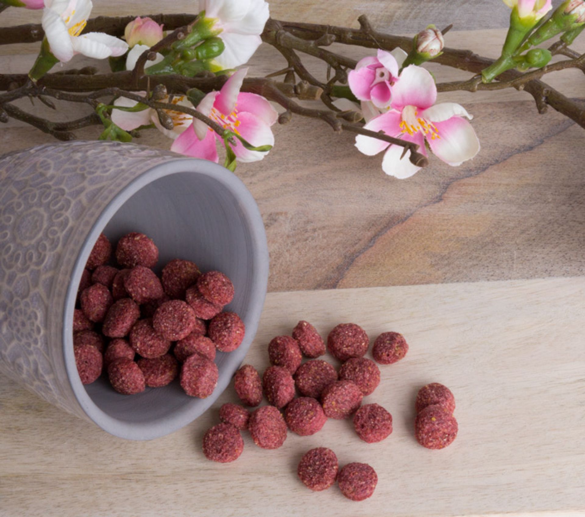 Die Rote Bete ist nicht nur eine der gesündesten Gemüsesorten die es gibt, sie schmeckt auch noch allen Tieren fantastisch gut. Daher besonders hervorragend für einen Belohnungssnack mit Jackpot-Charakter geeignet.