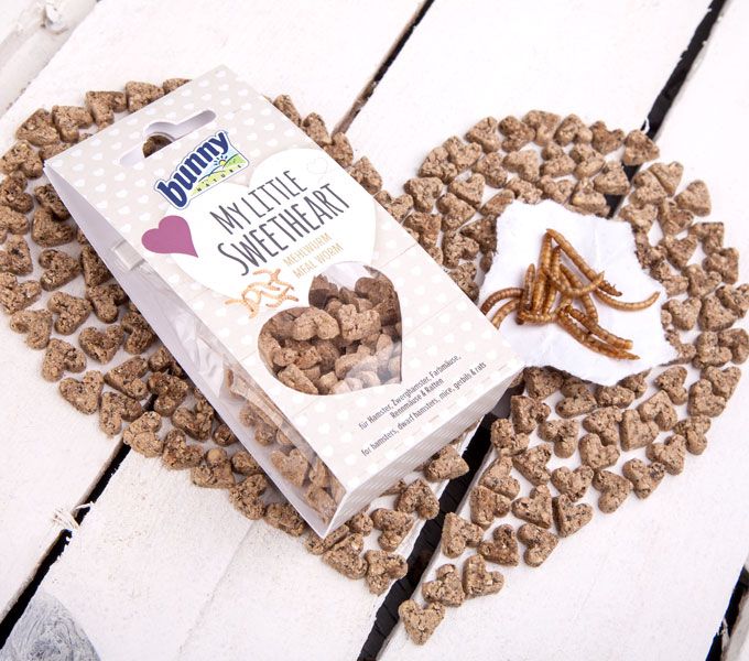 Eines ist mal klar: Mehlwürmer sind die absoluten Highlights! Da fliegen unsere kleinen Lieblinge total drauf und sie werden einem regelrecht aus der Hand gerissen. My little Sweetheart – Mehlwurm hat genau die richtige Snack-Größe für Hamster und Co ...