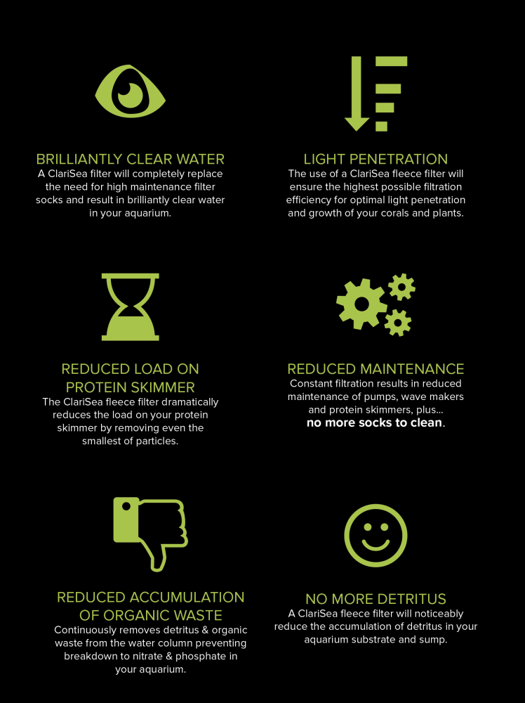 Ersetzt komplett den Einsatz von Filtersocken. Lebensdauer des Vlieses bis zu 2 Monate.