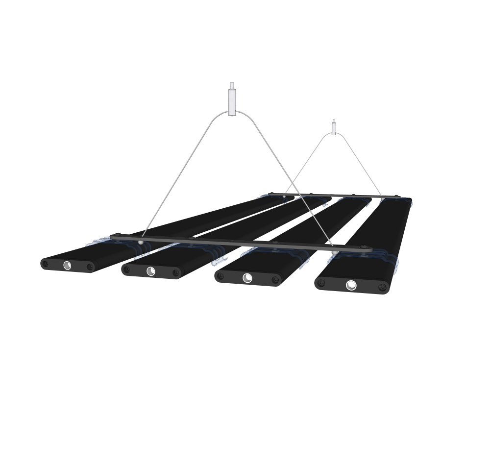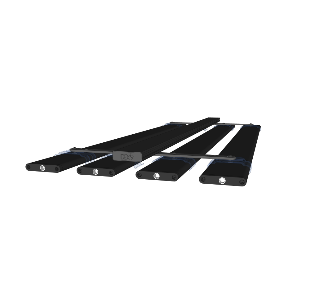 - Montieren Sie 2, 3 oder 4 AI Blade LED Leuchten auf der D-D OTM Schiene.