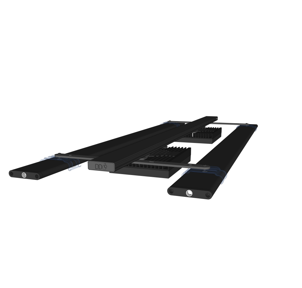 - Hybrid-Montage von 2 x AI Blade LED Lichtern zusammen mit AI Hydra 26/32/52/64 LED Lichtern auf der D-D OTM Schiene.