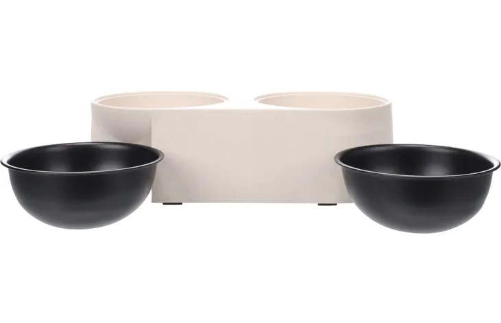 Machen Sie das Essen und Trinken für Ihren pelzigen Freund zu einem Fest mit dem Duo Dinner Kana in Beige und Schwarz! Zwei herausnehmbare Futter- und Trinknäpfe in einem praktischen Behälter, hergestellt aus Bambus und Kunststoff. Rutschfest, spülmaschinenfest und ideal für den täglichen Gebrauch. Guten Appetit!