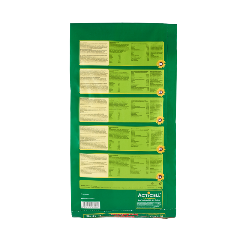 Der optimierte Energiewert von 367 Kcal/ 100 g, die sehr gute Verdaulichkeit und das Vermahlen aller festen Zutaten sorgen für eine hohe Bioverfügbarkeit.