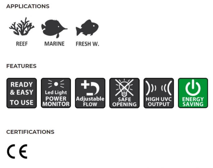 Leistung 7-W-UVC-Filter für Aquarien von 100 bis 300 Liter.