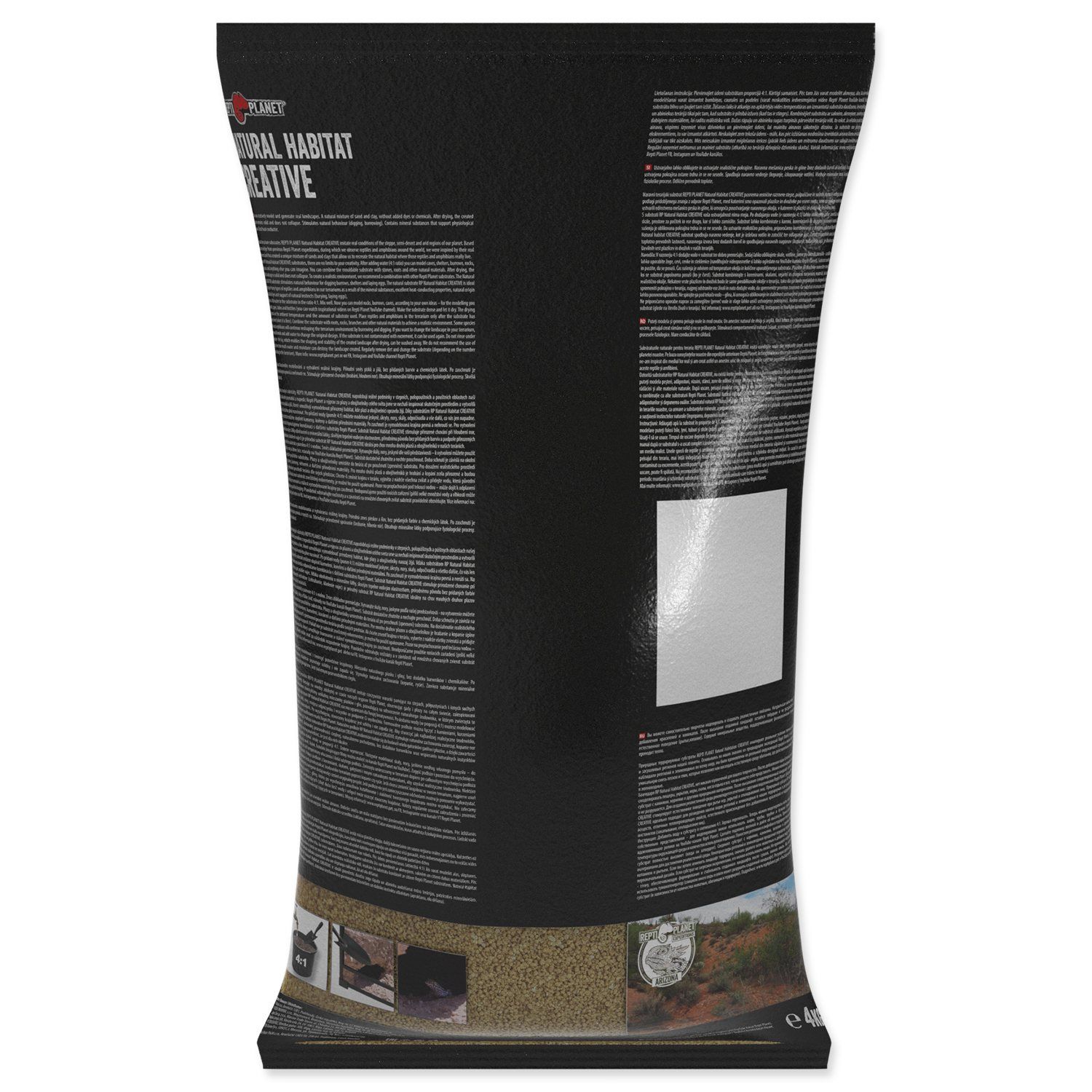 Die Möglichkeit, kreativ zu modellieren und eine echte Landschaft zu schaffen. Nach dem Trocknen ist die modellierte Landschaft fest und fließt nicht. Stimuliert das natürliche Verhalten (Graben, Graben). Enthält Mineralien, die physiologische Prozesse unterstützen. Hervorragende Wärmeleitfähigkeit. Völlig natürliche Terrariensubstrate REPTI PLANET Natural Habitat CREATIVE imitieren reale Bedingungen in den Steppen-, Halbwüsten- und Wüstenregionen unseres Planeten. Basierend auf Erkenntnissen aus Repti Planet-Expeditionen und Expeditionen für Reptilien und Amphibien auf der ganzen Welt haben wir uns von der realen Umgebung inspirieren lassen und eine einzigartige Mischung aus Sand und Ton geschaffen, die es uns ermöglicht, den natürlichen Lebensraum zu modellieren, in dem Reptilien und Amphibien wirklich leben. Dank der RP Natural Habitat CREATIVE-Substrate können Sie Ihre Kreativität voll entfalten. Gebrauchsanweisung Nach Zugabe von Wasser (Verhältnis 4:1) können Sie Höhlen, Unterstände, Höhlen, Felsen, Rastplätze und alles, was Ihnen sonst noch einfällt, modellieren. Den formbaren Untergrund können Sie mit Steinen, Wurzeln und anderen Naturmaterialien ergänzen. Nach dem Trocknen ist die modellierte Landschaft fest, sie fließt nicht. Um eine realistische Umgebung zu schaffen, empfehlen wir eine Kombination mit anderen RP-Untergründen.