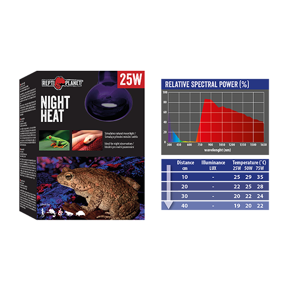 REPTI PLANET Night Heat simuliert das natürliche Mondlicht und ist eine ideale Kombination mit Tageslicht-Wärmelampen (z. B. Repti Planet Infrared Heat, Daylight Basking Spot, Daylight Frosted, Daylight Neodymium oder Far Infrared Heat).