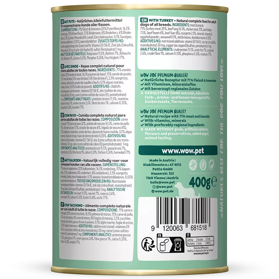 Produktinformationen "Wow Dog Adult | Mit Pute 6x400g"