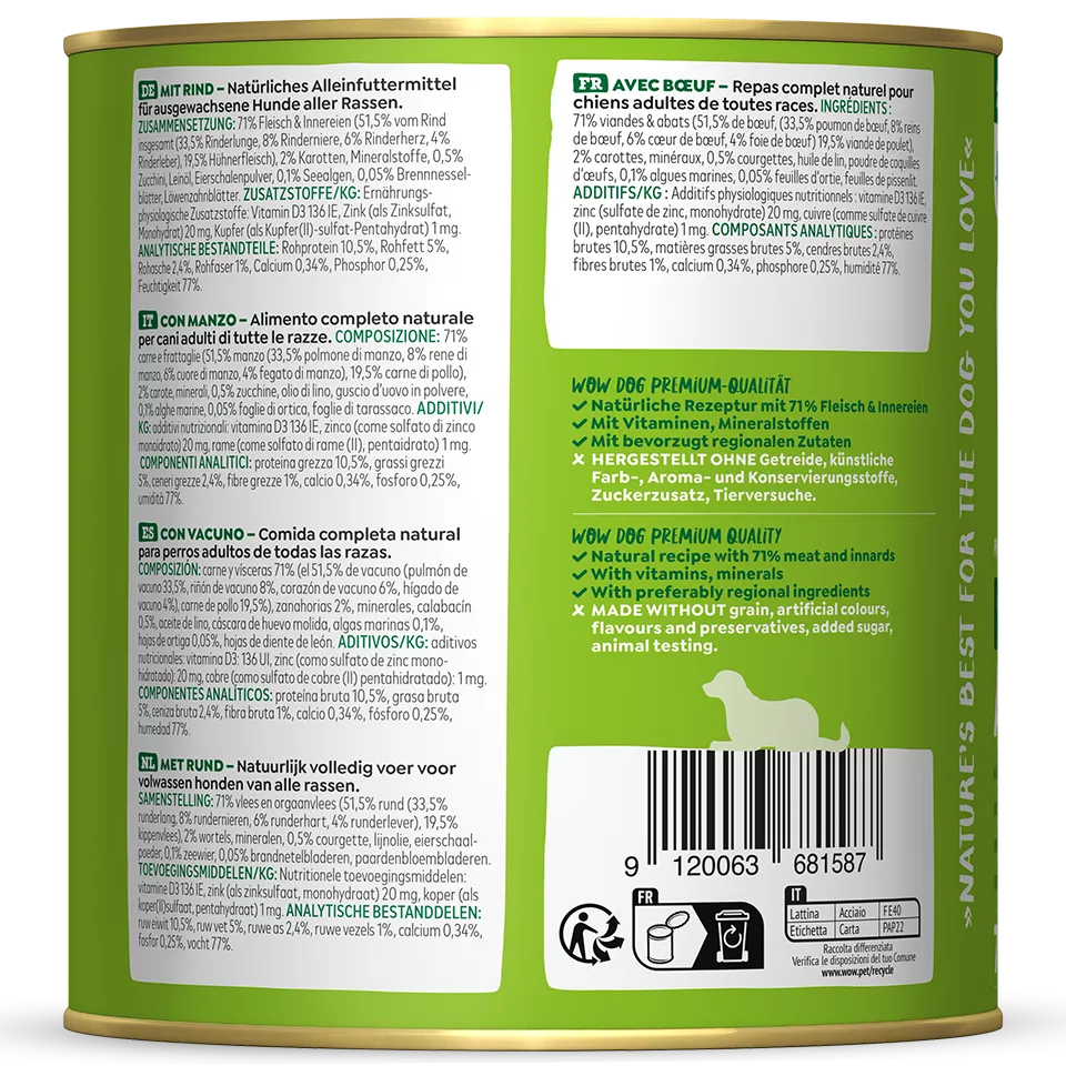 - WOW Geschmackstipp: Der hohe Proteingehalt vom Rind macht deine Fellnase bereit für jedes Abenteuer!